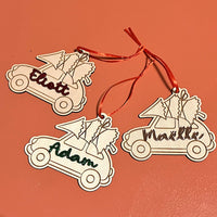 Décorez votre sapin en personnalisant cet ornement aux couleurs de votre choix en le coloriant ou en le peinturant. Vous avez également la possibilité d'ajouter le prénom de l'enfant en acrylique (qui sera à coller sur la voiture) ainsi que choisir la couleur du prénom.