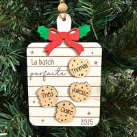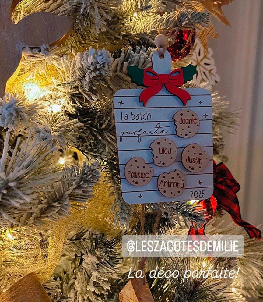 Pimper votre sapin de Noël avec cet ornement personnalisé avec les prénom des membres de votre famille. Il est en forme de planche à découper et chaque biscuit représente un membre (donc pas nécessairement 4 comme sur la photo).