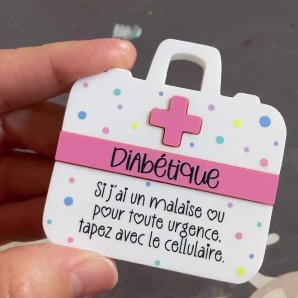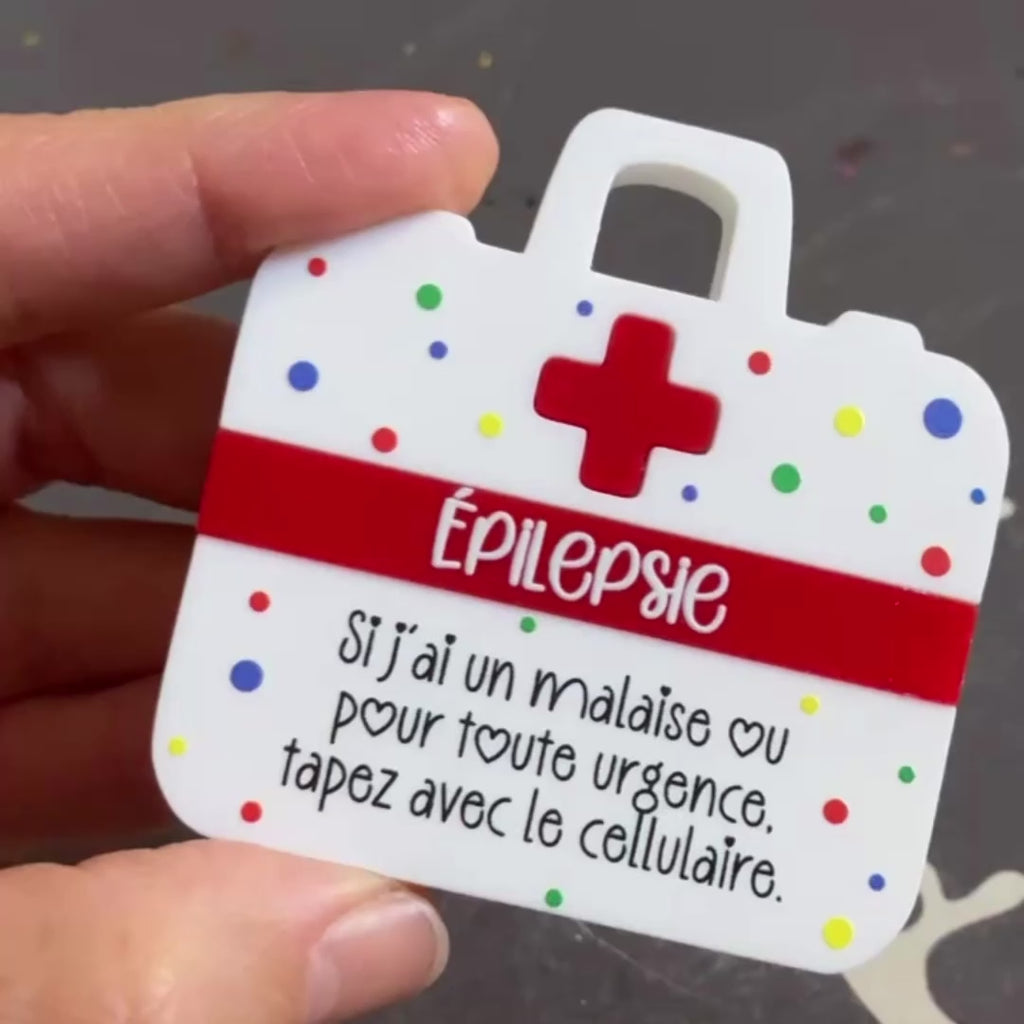 Vous ou un proche avez une maladie qui nécessite des secours s'il arrivait quelque chose, que se soit l'Alzheimer, l'épilepsie, l'autisme, le diabète, etc ? Ajoutez une petite touche sécuritaire lors de vos sorties avec ce porte-clé en forme de trousse de premiers soins que vous pourrez accrocher à un sac, sacoche, etc. Il contient le numéro de téléphone que nous devons composer en cas d'urgence.