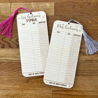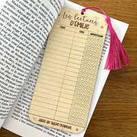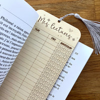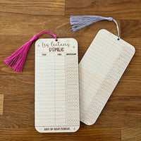 Enrichissez votre pratique de lecture avec ce signet en bois. Conçu comme un véritable instrument de suivi littéraire, il vous permet d'évaluer vos lectures selon le niveau d'appréciation. Aux allures d'une carte de bibliothèque, vous pourrez inscrire 45 livres (recto/verso).